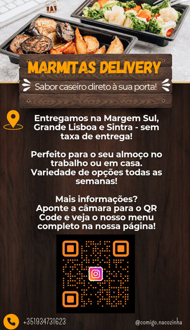 Um prato cheio de amor e um panfleto feito com alma. Cozinha com identidade e sabor em cada detalhe.